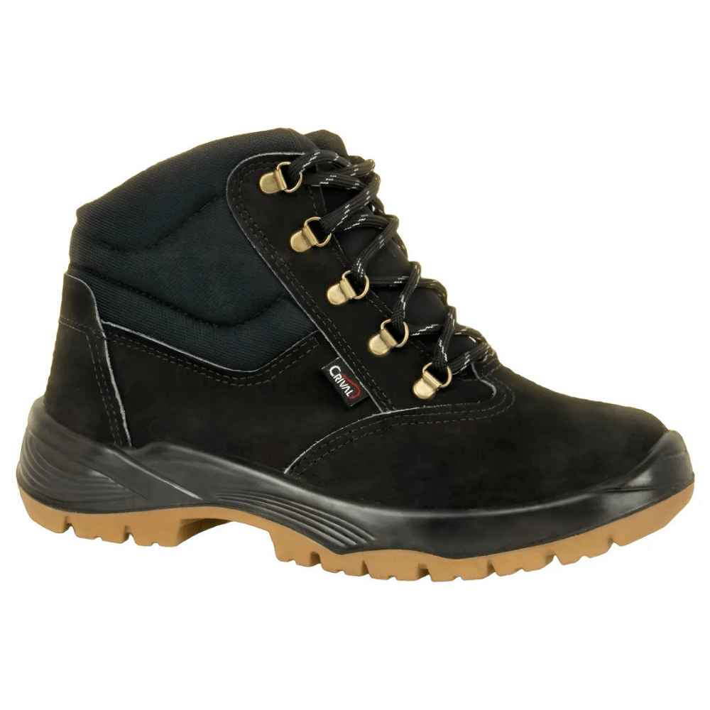 <p>A Botina Grupon da Crival, na cor preta, é projetada para oferecer resistência e conforto em ambientes de trabalho exigentes.</p> <p>Com cadarço para ajuste seguro, bico de PVC e solado bi densidade, é uma excelente opção para quem busca durabilidade e proteção no dia a dia.</p>